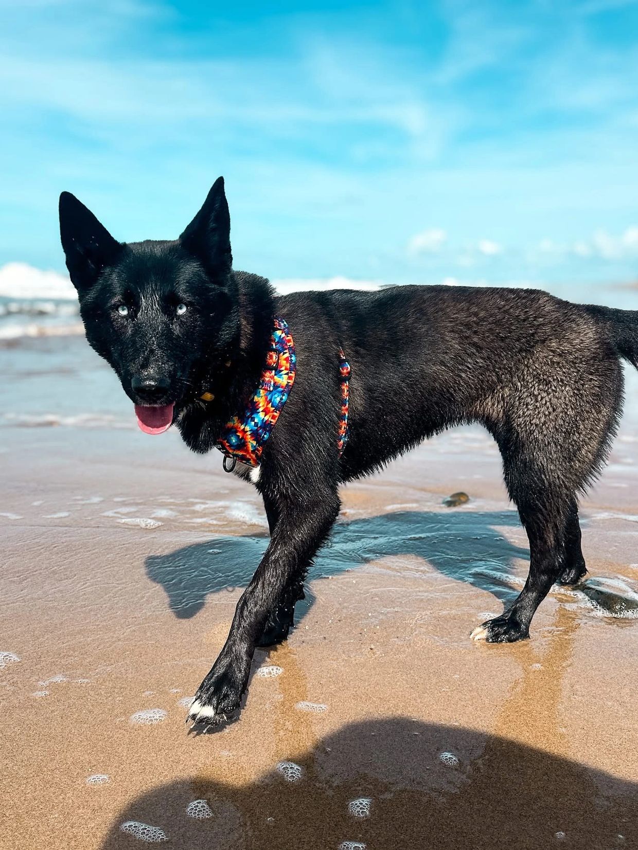 Delphi is from our Alaska x Omen litter. She is a very friendly girl, she doesn’t have a mean bone in her body, she loves all dogs and people. She is very active and enthusiastic about life and loves to run around our property and have a swim at our creek or catch up for doggy play dates with friends at the beach. She is medium-high energy.