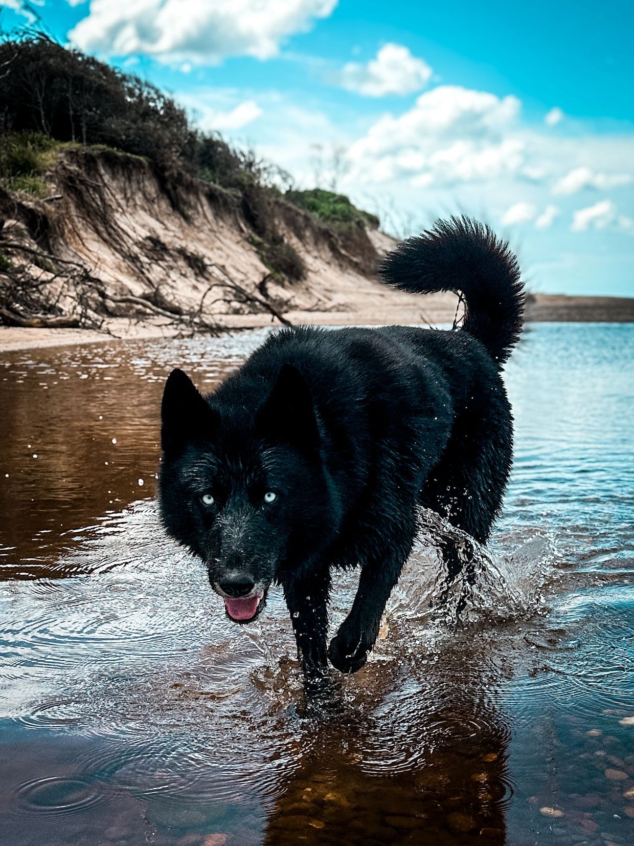 Omen has medium energy levels and is a Velcro dog with perfect recall. When on walks he rarely leaves my side. He will happily come along to busy cafes and nap next to us while we enjoy a meal. He is a real “take anywhere” laidback, bombproof kind of dog. This boy has been so impressive from day 1 and just wants to please.